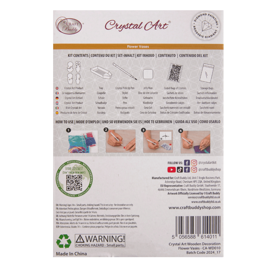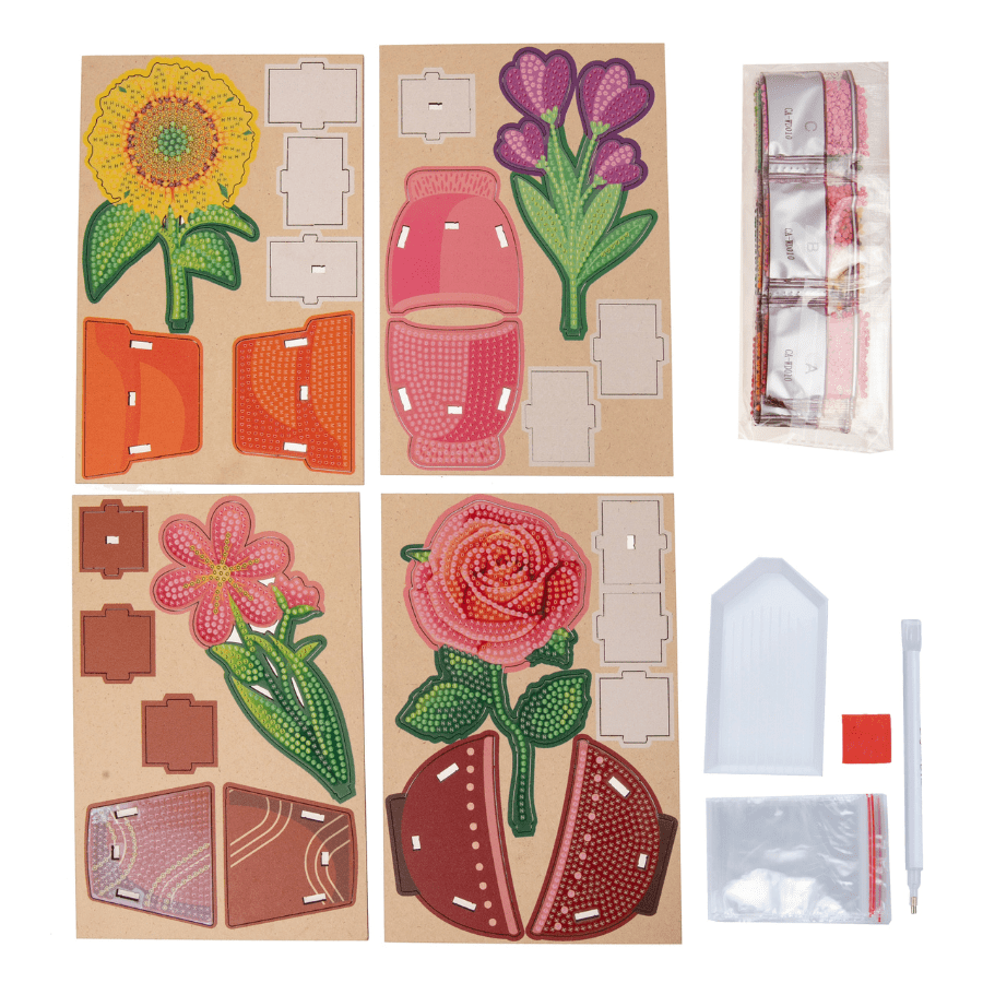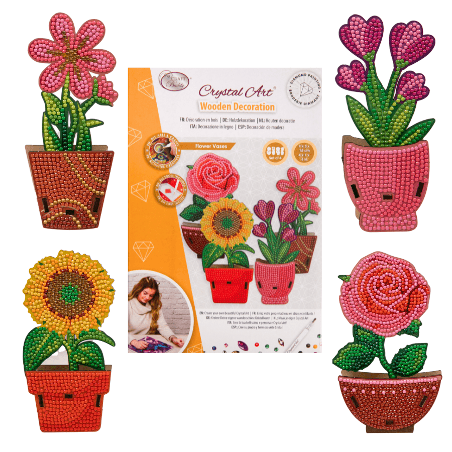 "Floral Vases" Crystal Art Wooden Decoration Kit - Set of 4