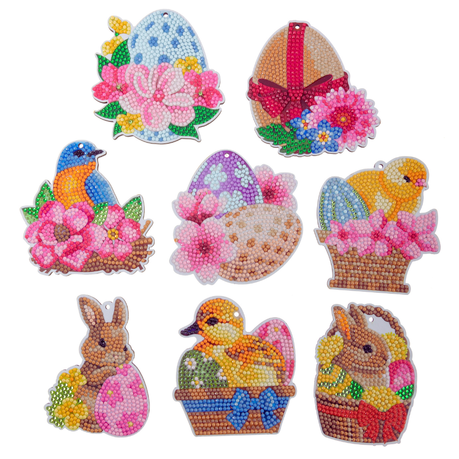 'Floral Fun' Crystal Art Easter Hanging Decoration Set of 8